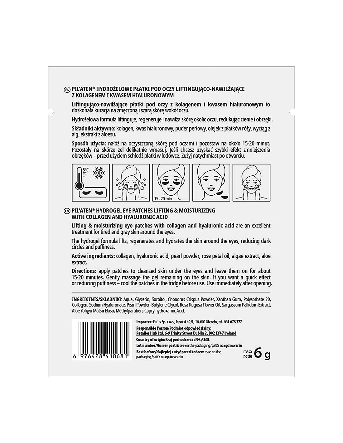 PILATEN -Hydrożelowe płatki pod oczy z Kolagenem i Złotem Koloidalnym 6g - 2 szt.