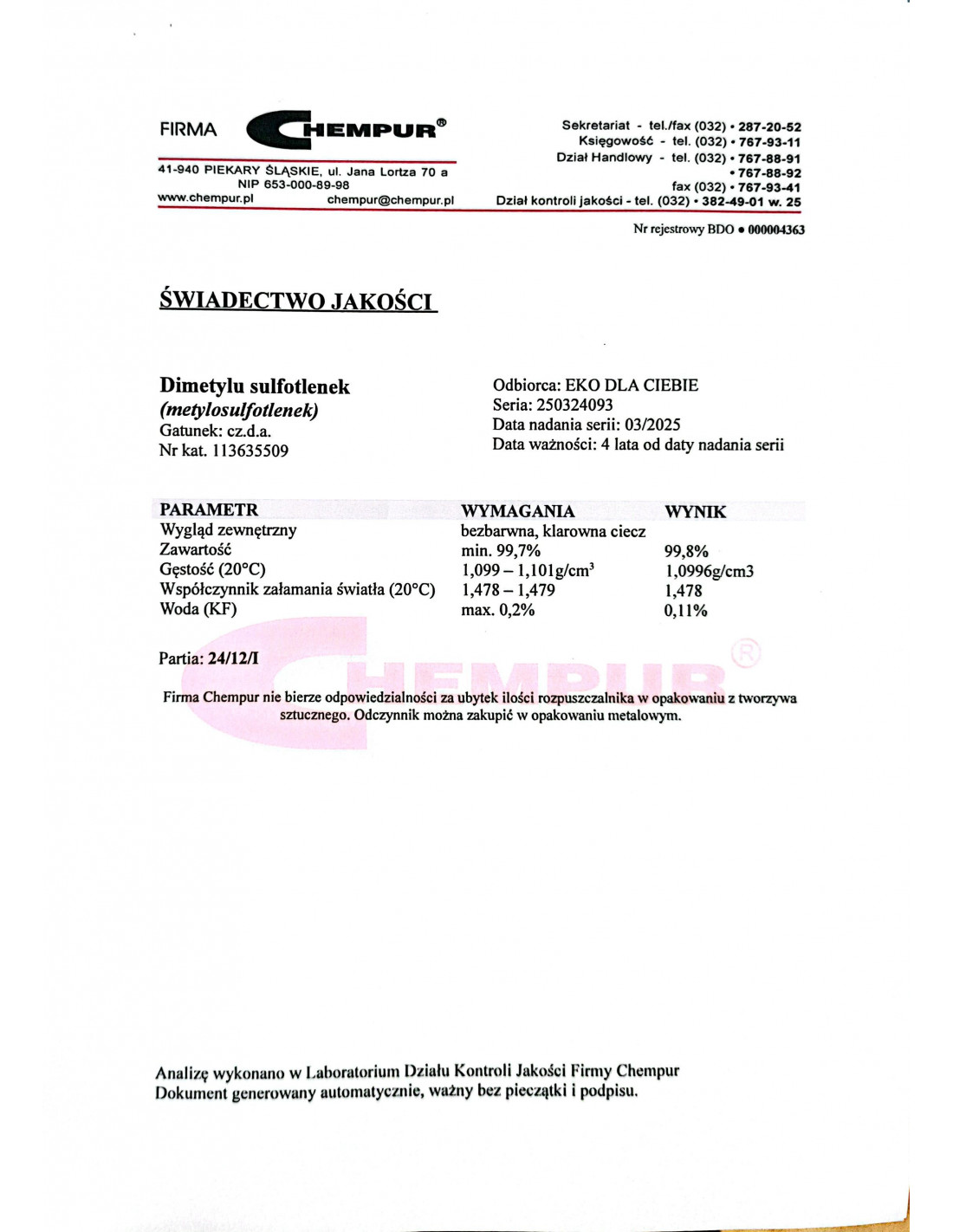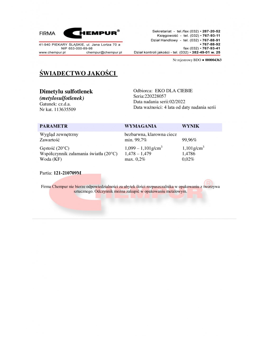 Producent: Firma Chempur, 41-940 Piekary Śląskie, ul. Jana Lortza 70A