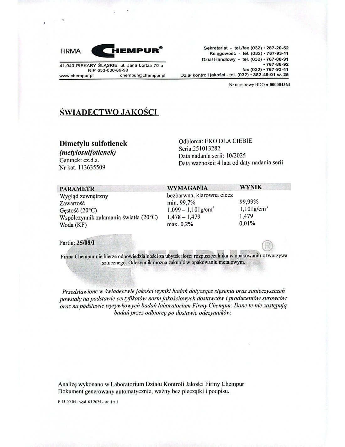 Producent: Firma Chempur, 41-940 Piekary Śląskie, ul. Jana Lortza 70A