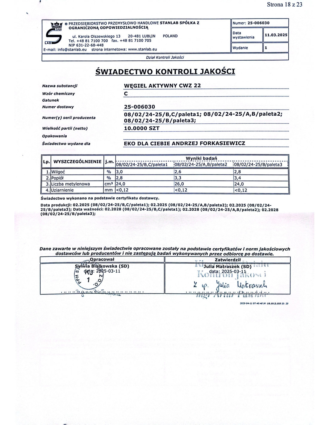 Producent: „STANLAB” sp. z o.o. ul. Olszewskiego 13 20-481 LUBLIN