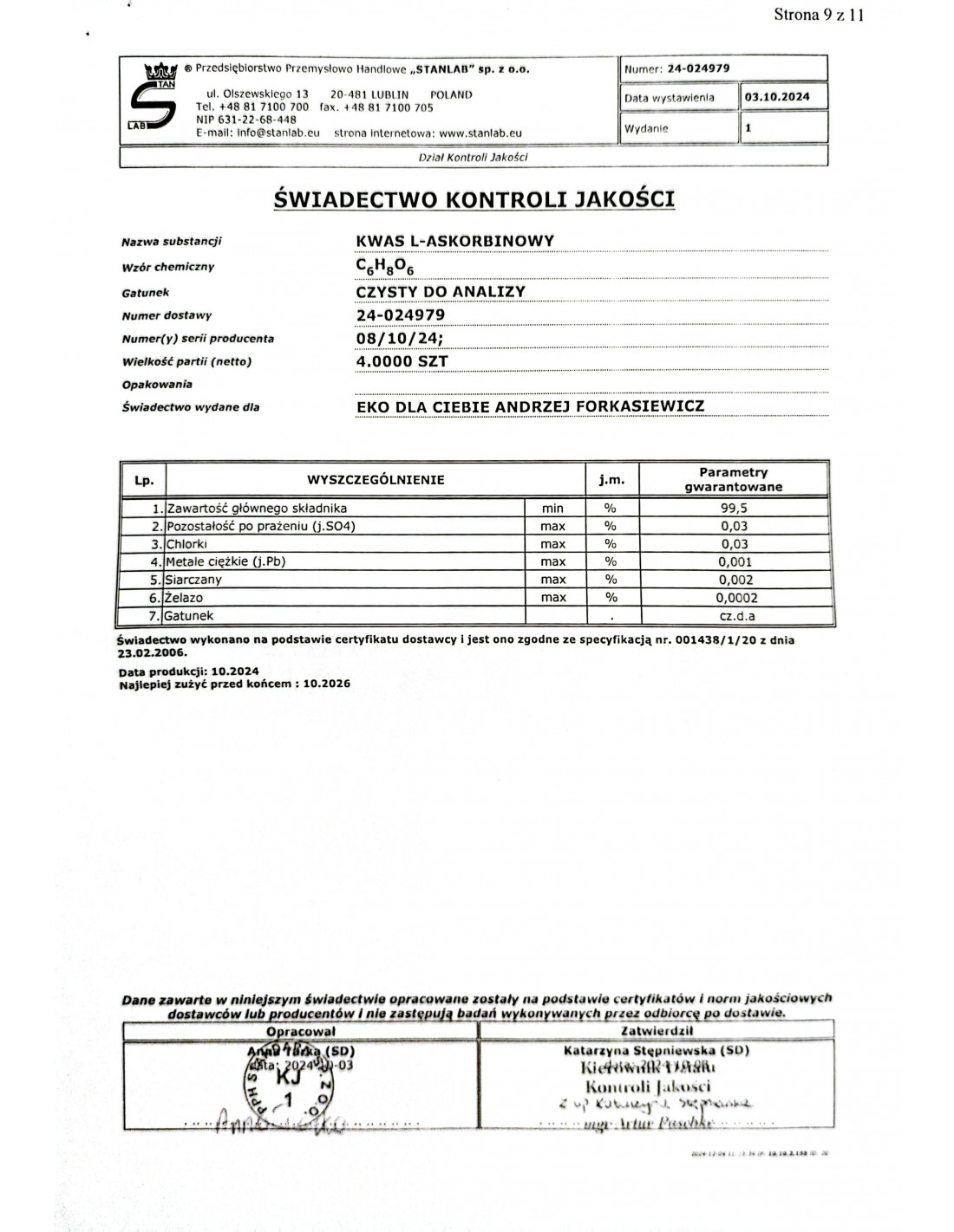 Kwas L askorbinowy CZDA 500g witamina C Stanlab