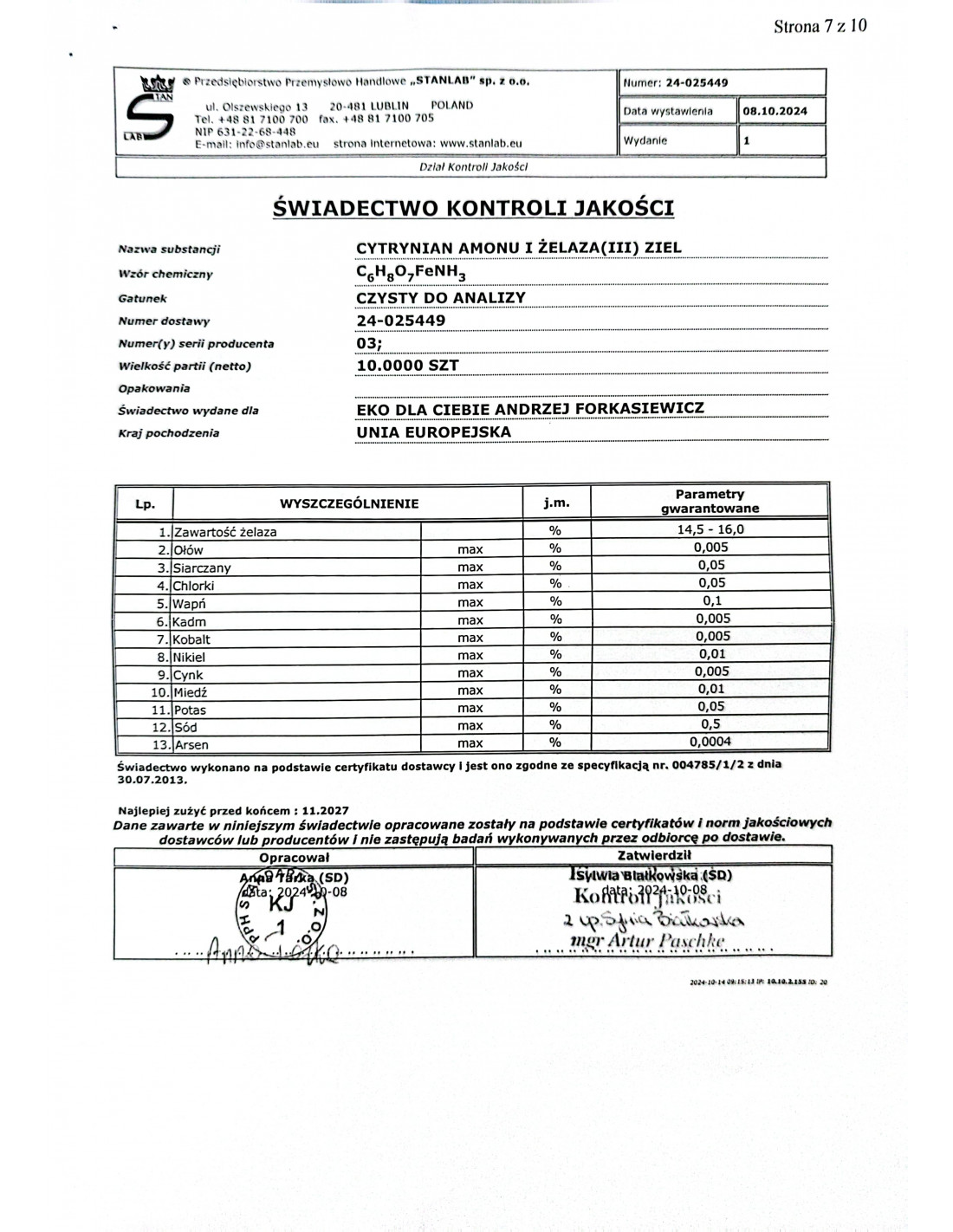 1. CYTRYNIAN AMONU ŻELAZA (III) CZDA – 250 g - data ważności 05.2029