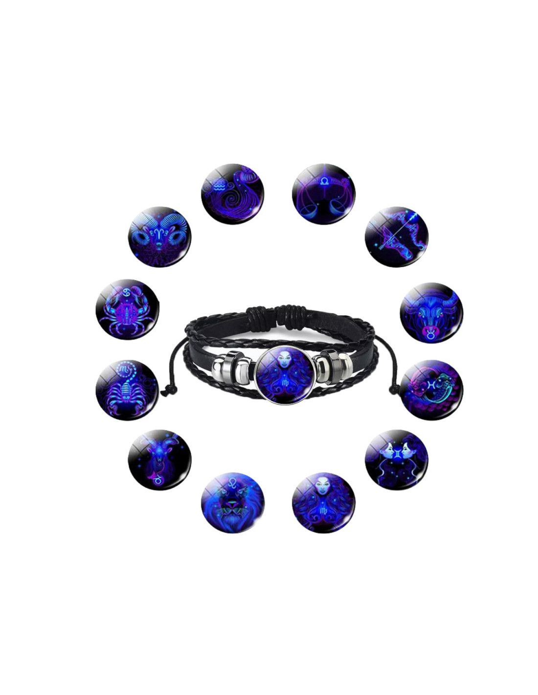 Każdy koralik na wielowarstwowej, skórzanej bransoletce symbolizuje inny znak zodiaku.