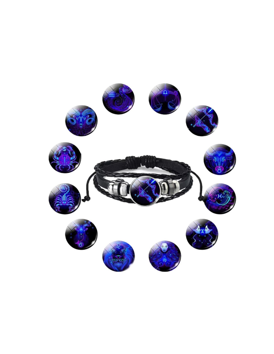 Każdy koralik na wielowarstwowej, skórzanej bransoletce symbolizuje inny znak zodiaku.