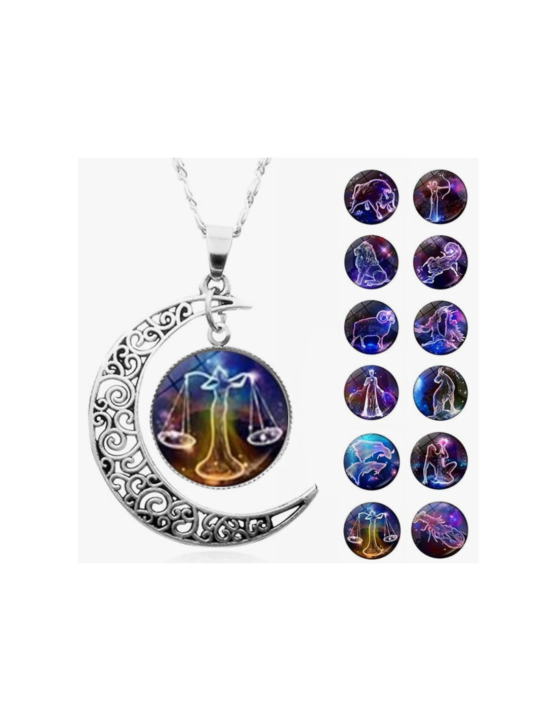 Jest to piękna konstelacja, kształt księżyca i świecący szklany wisiorek, który pokaże