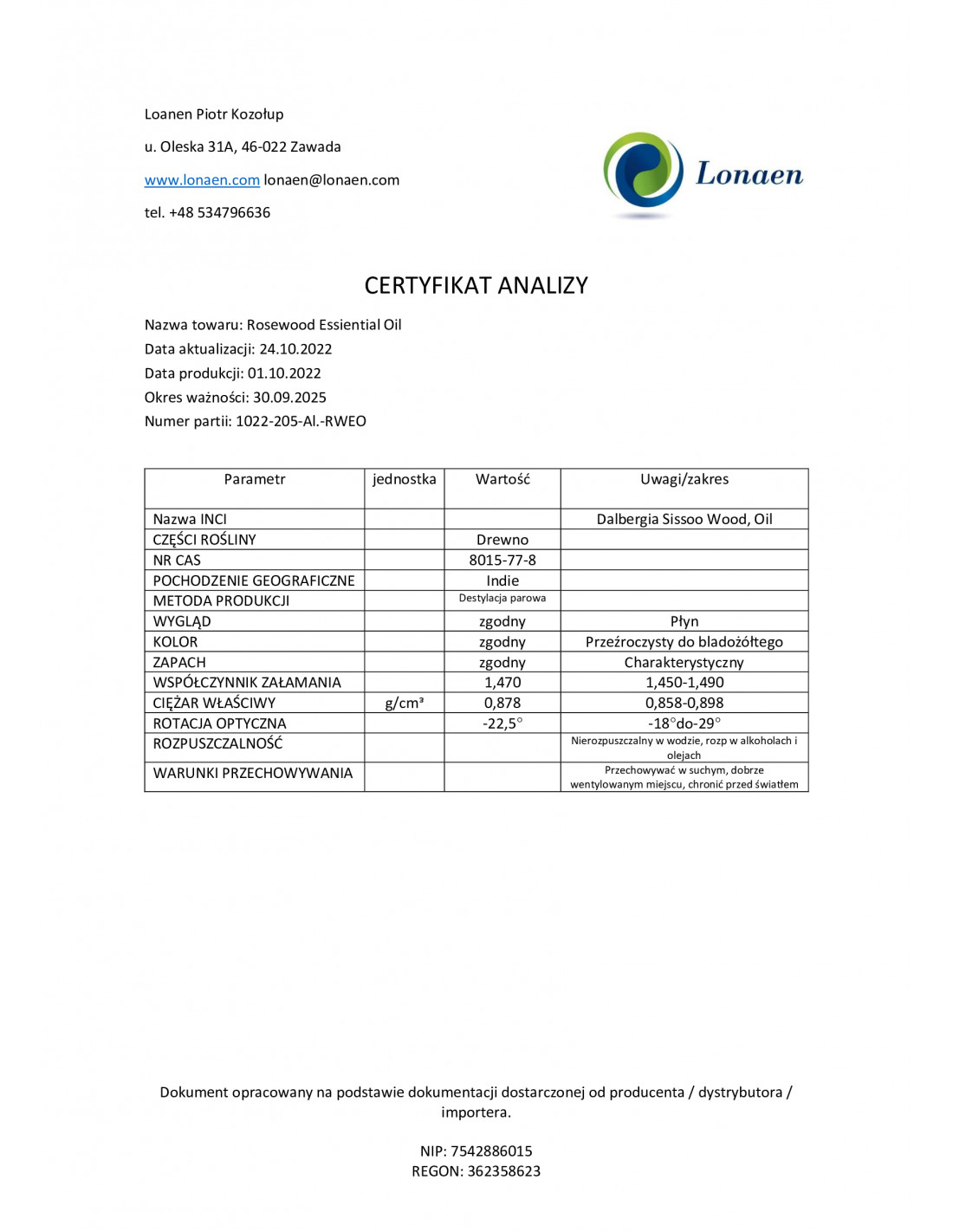 Składniki: 10% Aniba Rosaedora (Rosewood) Oil