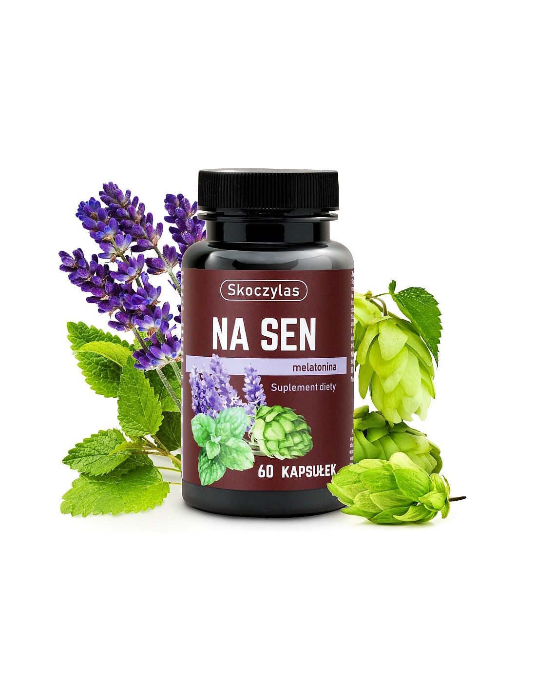 Suplement diety Na sen to zbiór ekstraktów roślinnych z dodatkiem melatoniny. Poprzez odpowiedni dobór