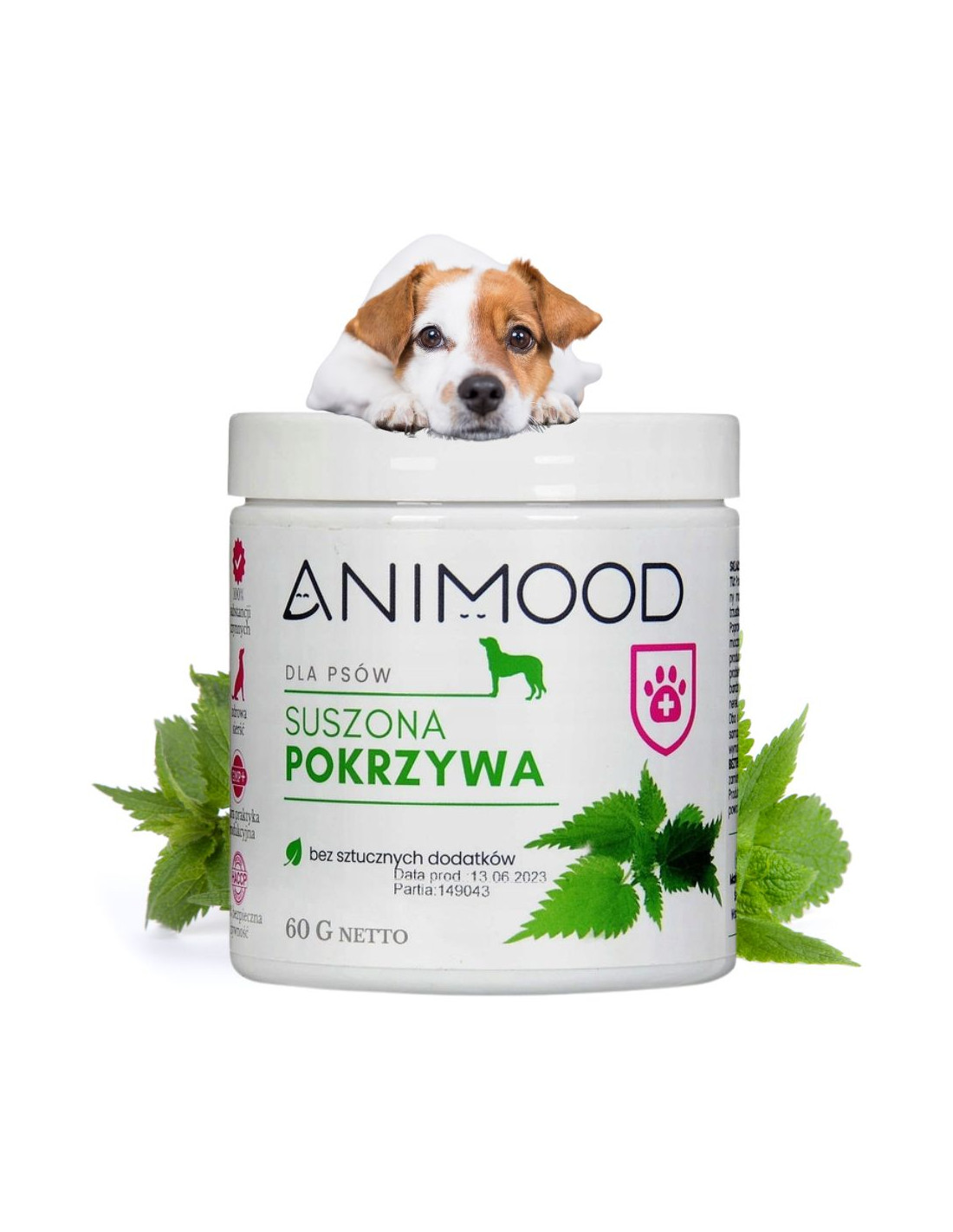 Drobno zmielona pokrzywa 100%* *zawiera wiele witamin i soli mineralnych, których psy potrzebują, aby zachować zdrowie i witalnoś