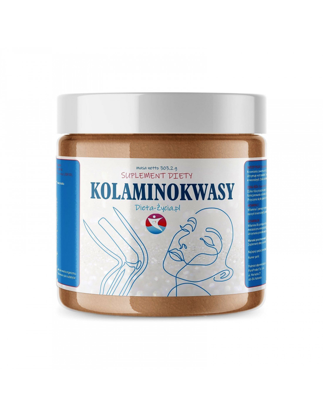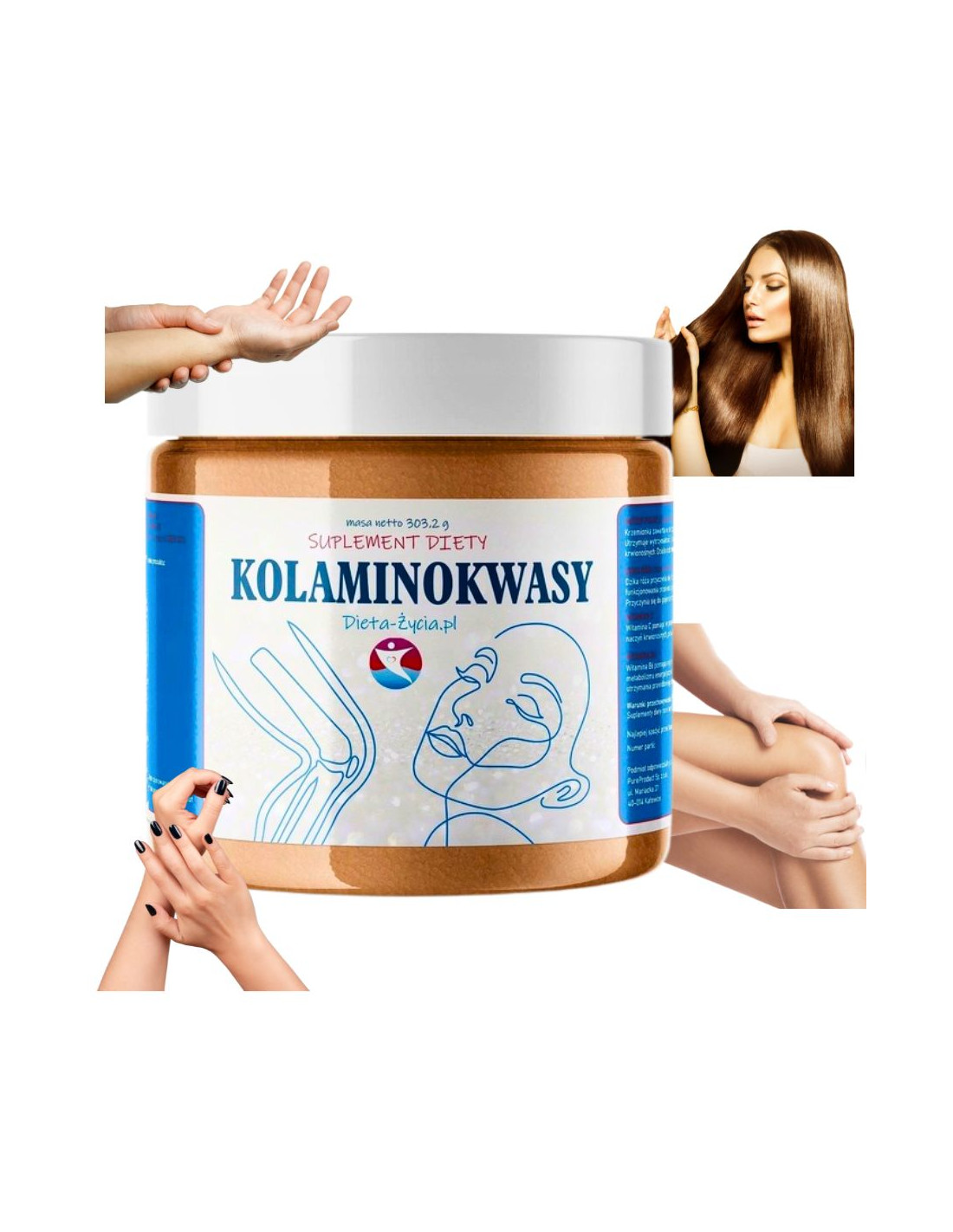 Składniki: kolagen hydrolizowany wołowy, kolagen hydrolizowany rybi, l-lizyna, l-glicyna, ekstrakt z owoców dzikiej róży (Rosa canina L.), standaryzowany na 70% witaminy C DER 4:1; metylosulfonylometan (MSM); l-prolina; ekstrakt z skrzypu ziela polnego (Equisetum arvense L.) DER: 10:1; witamina B6 (5'-fosforan pirodyksyny).