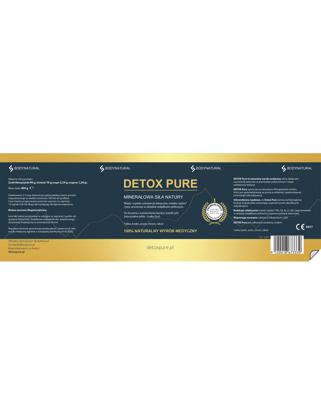 Oznakowanie CE 0477 potwierdza, że DETOX PURE spełnia europejskie wymagania bezpieczeństwa i zdrowia.