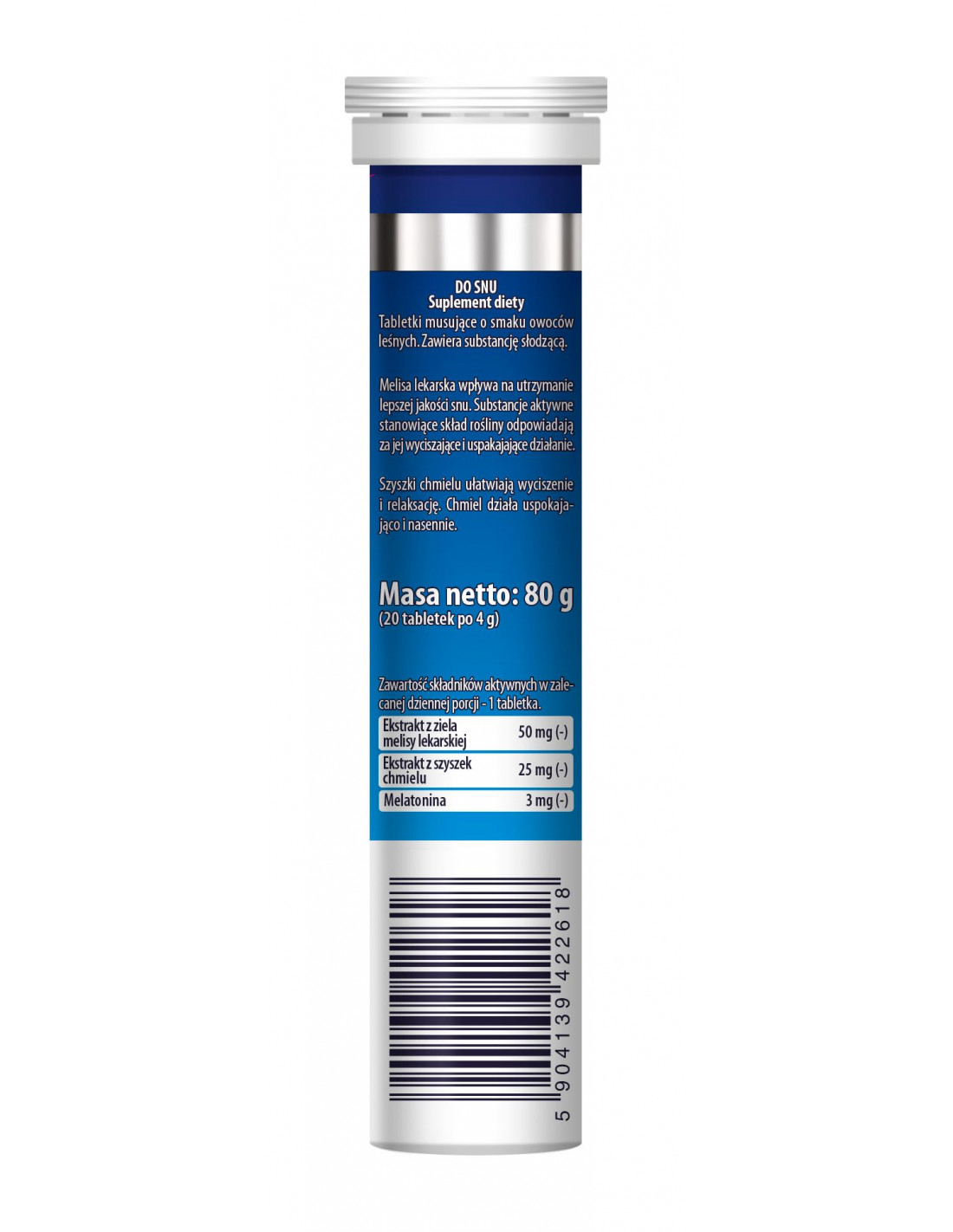 zawiera ekstrakty z melisy, szyszek chmielu oraz melatoninę