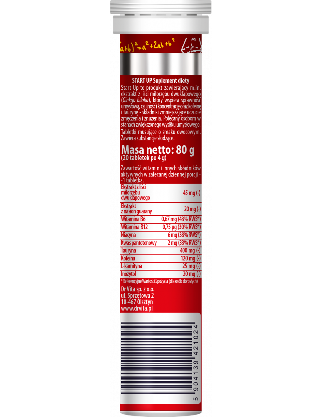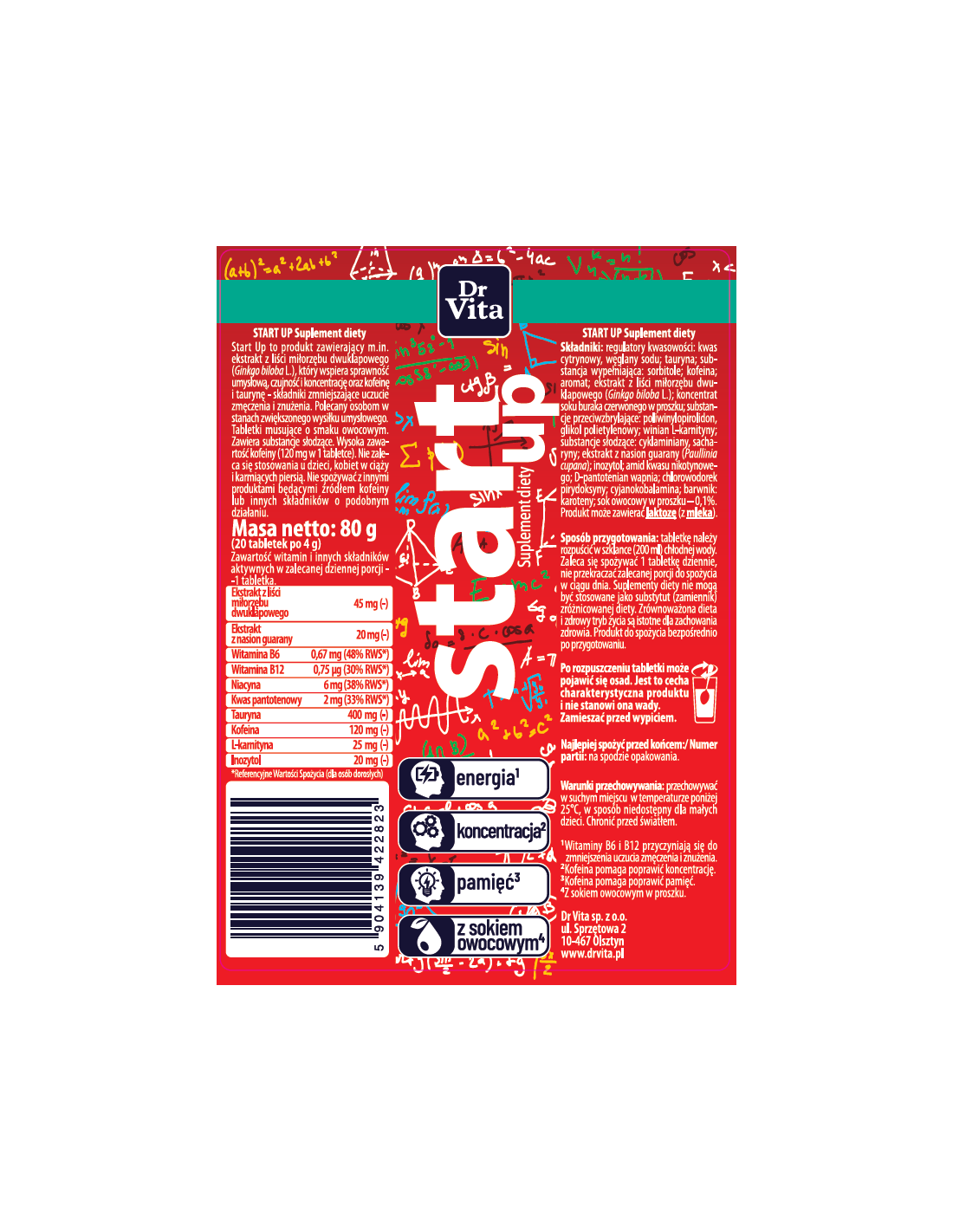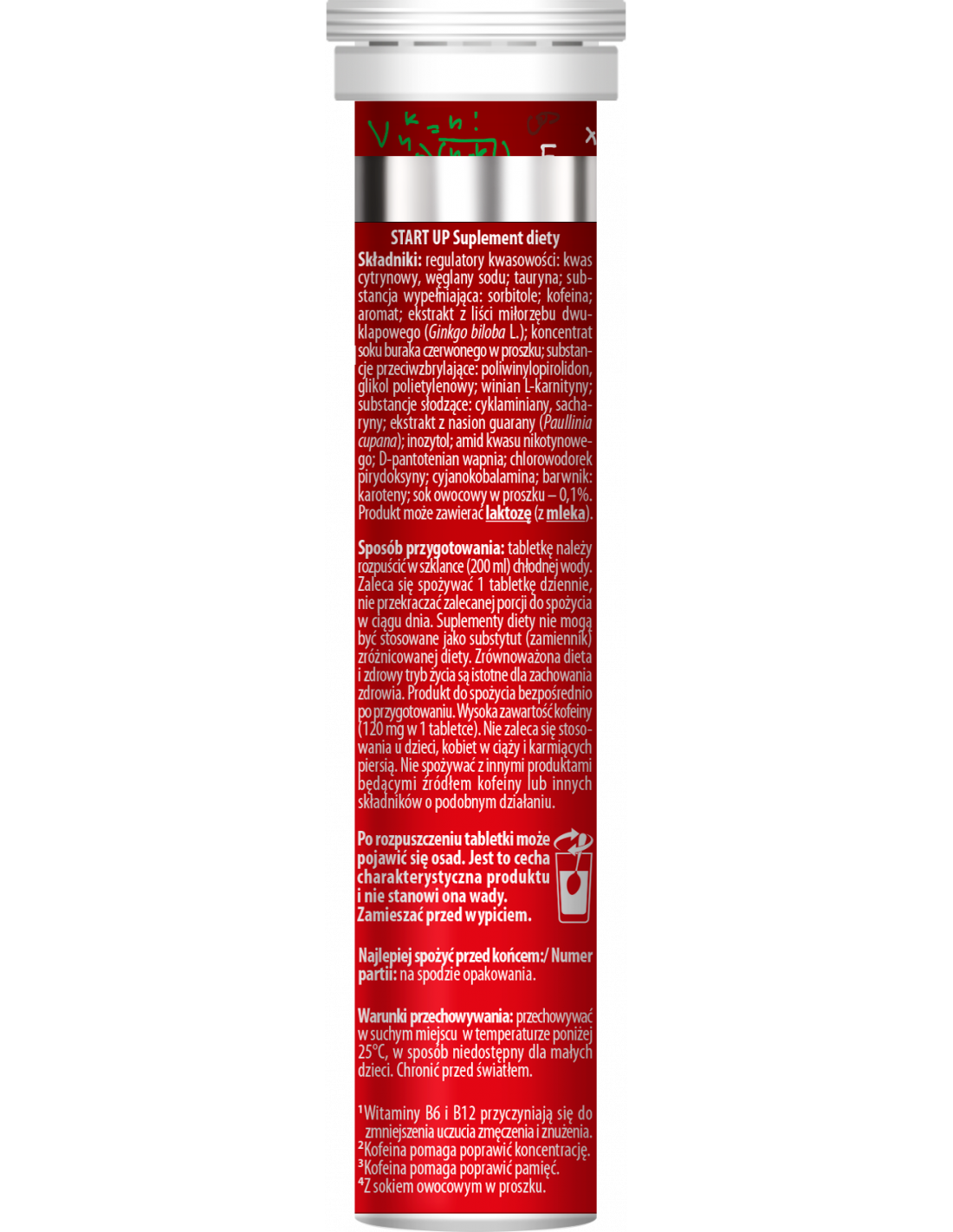 Start Up to produkt zawierający m. in, ekstrakt z liści miłorzębu dwuklapowego (Ginkgo biloba L.), który wspiera sprawność umysłową, czujność i koncentrację oraz kofeinę i taurynę – składniki zmniejszające uczucie zmęczenia i znużenia.