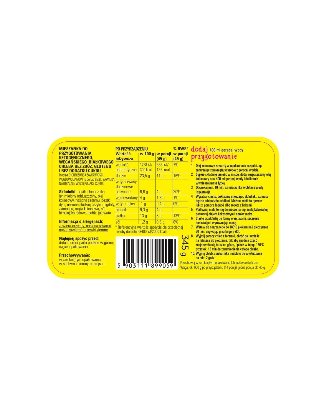 Waga ok. 630 g (14 porcji, jedna porcja 45 g)