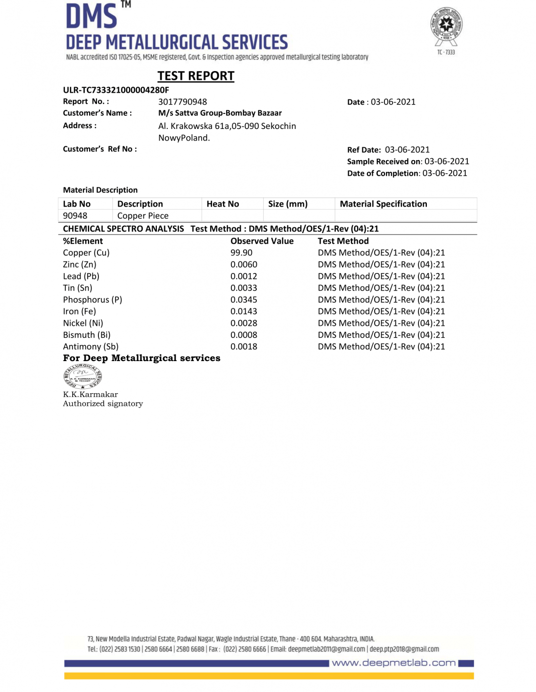 - polakierowana powierzchnia ma na celu ochronę oryginalnego koloru miedzi