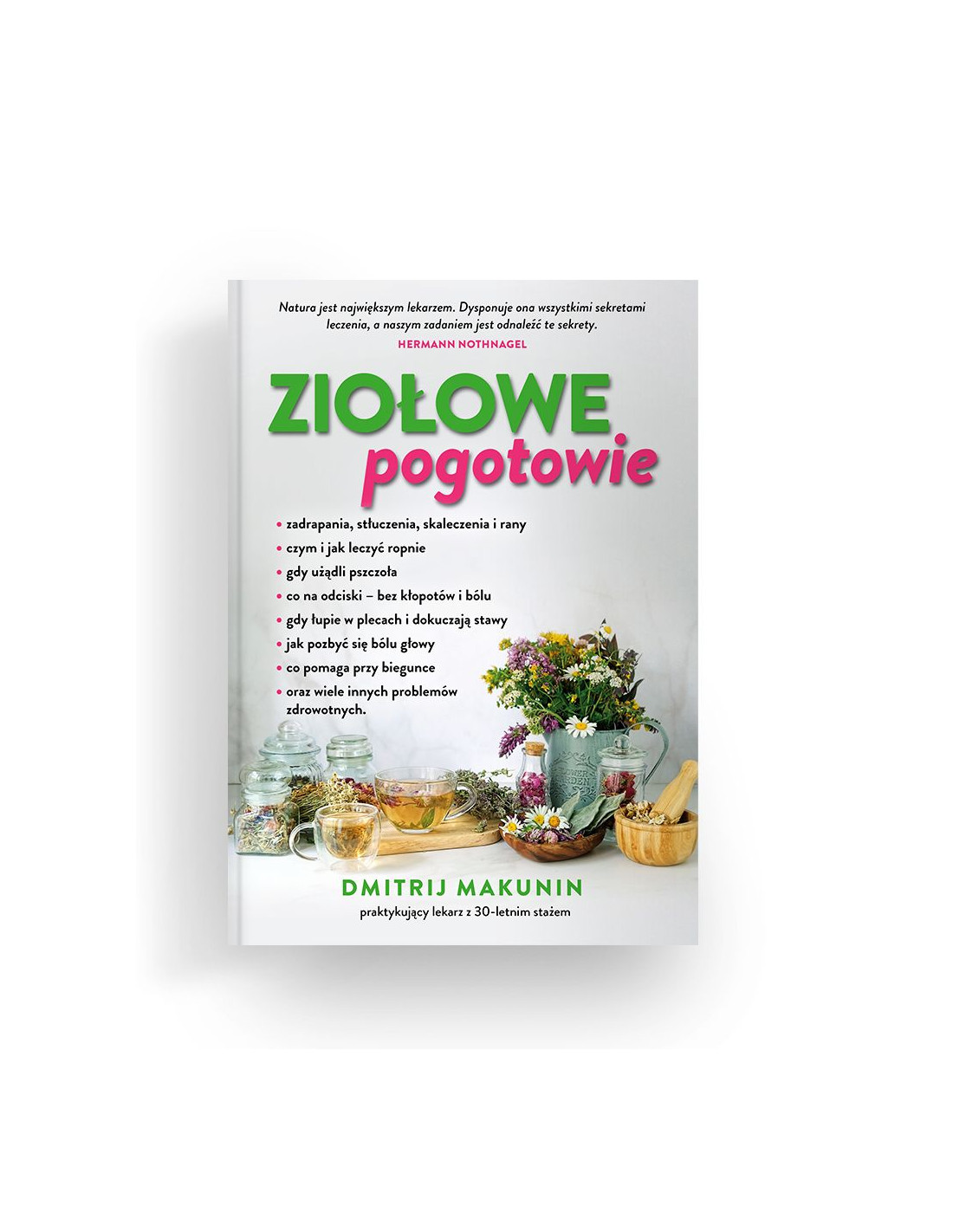 Książka zawiera opisy ponad 40 gatunków roślin leczniczych, a autor wykorzystując ich właściwości oferuje przepisy na prawie każdą „okazję”: skaleczenia, siniaki, skręcenia, dolegliwości jelitowe, bóle głowy i zębów, ukąszenia owadów i wiele innych. Podkreśla również, że wszystkie te dolegliwości można skutecznie leczyć bez „chemii”, stosując wyłącznie naturalne, niedrogie środki.