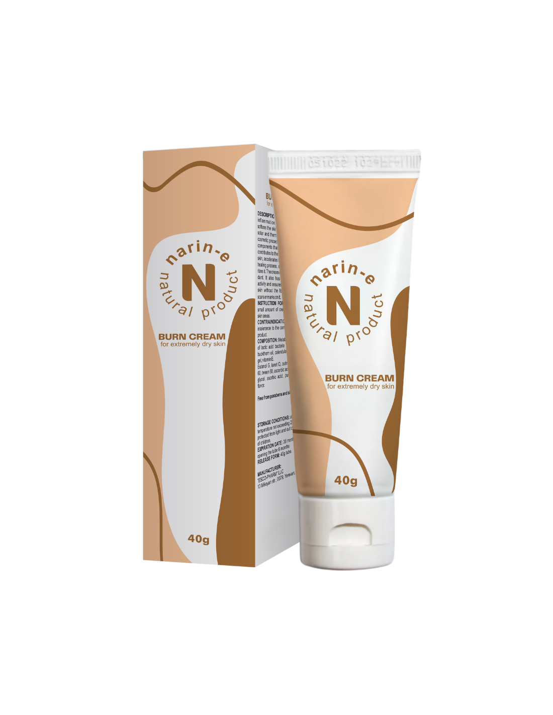 Krem Narin-E Burn Cream łagodzi skórę objętą stanem zapalnym i obrzękami, koi oraz zmiękcza skórę po oparzeniach (w tym słonecznych i termicznych), a także podrażnienia powstałe po zabiegach kosmetycznych.